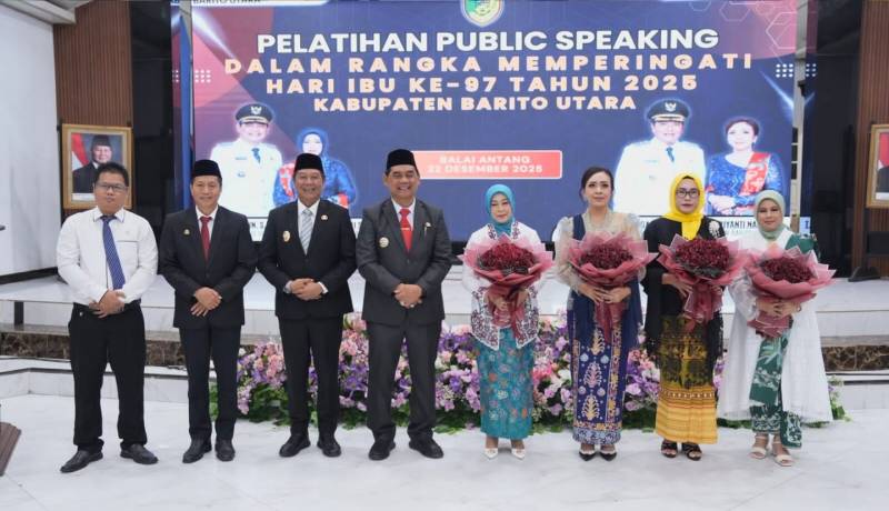 MUARA TEWEH, FAJARKALTENG.com – Memperingati Hari Ibu ke-97 Tahun 2025, TP PKK Kabupaten Barito Utara adakan Pelatihan Public Speaking yang berlangsung di Gedung Balai Antang Muara Teweh, Senin (22/12). Pada kegiatan tersebut juga dibuka langsung oleh Bupati Barito Utara H. Shalahuddin, S.T., M.T.