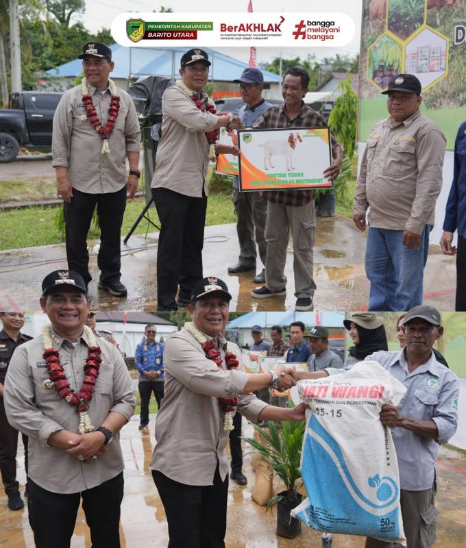 “Bantuan ini merupakan bentuk dukungan pemerintah daerah untuk meningkatkan produktivitas pertanian dan peternakan masyarakat. Total bantuan meliputi ribuan bibit tanaman, pupuk, pestisida, serta ternak sapi, kambing, babi, ayam petelur, dan pakan ternak,” jelas H. Adi Hariadi.